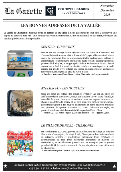 Gazette Coldwell Banker La Clé des Cimes Novembre - Décembre 2025