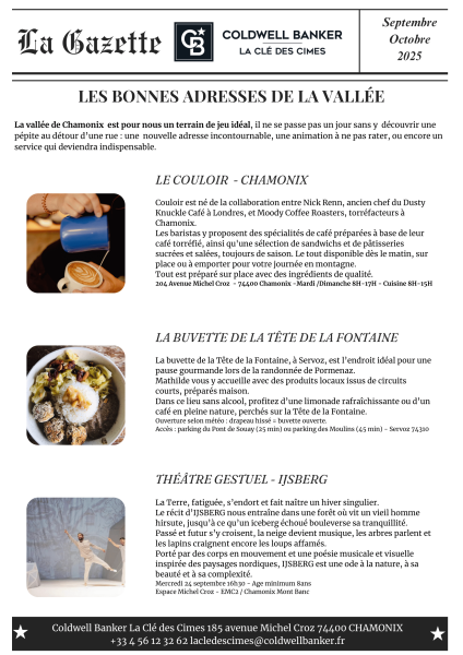 - Le café "Le couloir" à Chamonix, avec ses délicieuses spécialités de cafés préparés à base de leur café torréfié, sandwichs et pâtisseries.